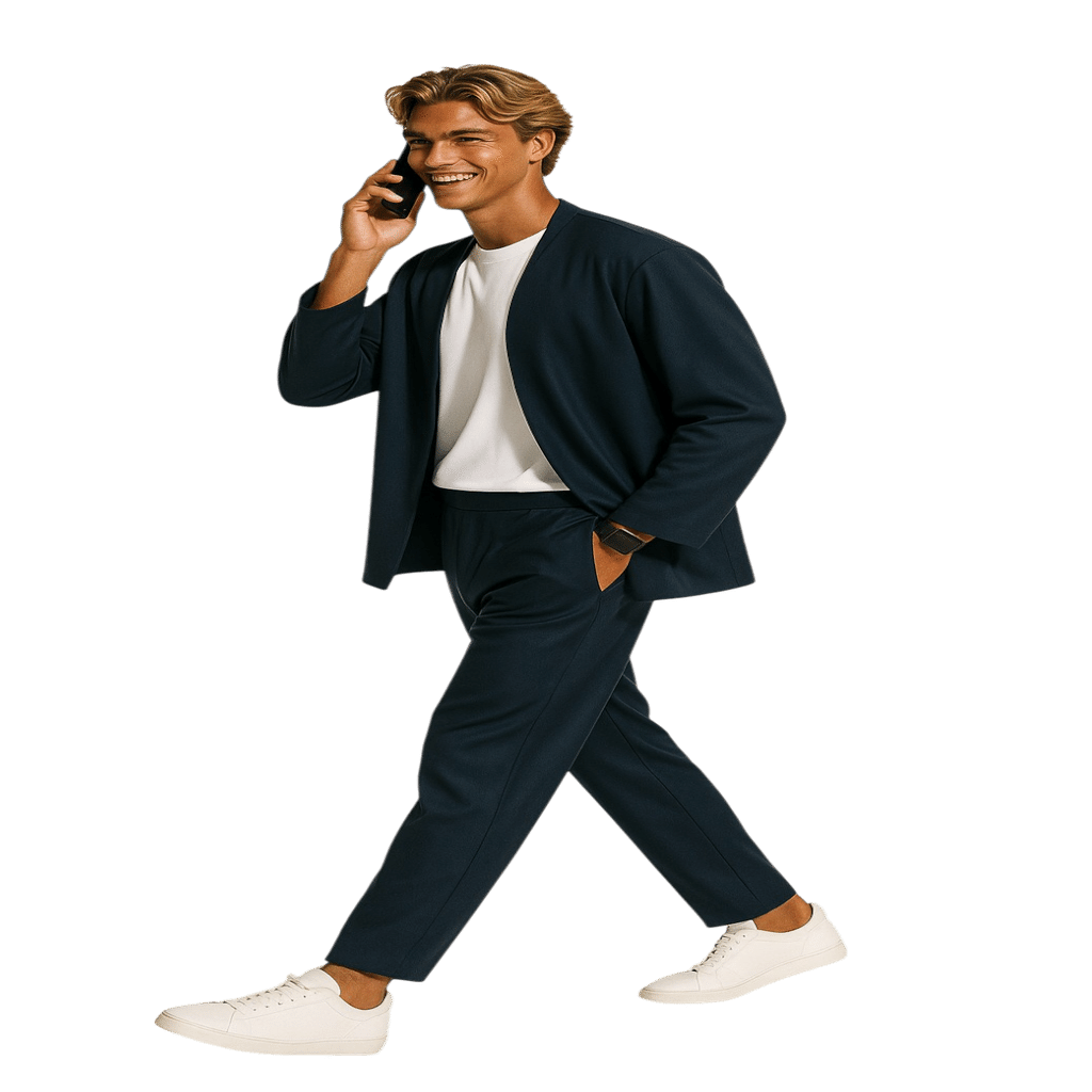 顔を洗い、MUJIの化粧水をたっぷりと肌に馴染ませる。キッチンに向かい、ブルーボトルコーヒーを淹れる。ミルクは成城石井で買ったオーツミルクを使う。色違いで2着揃えたTheoryのTシャツに着替え、Their Suits Clubhouseのセットアップスーツを羽織る。Apple Watchを巻き、通勤用のバッグはいつものTUMI。