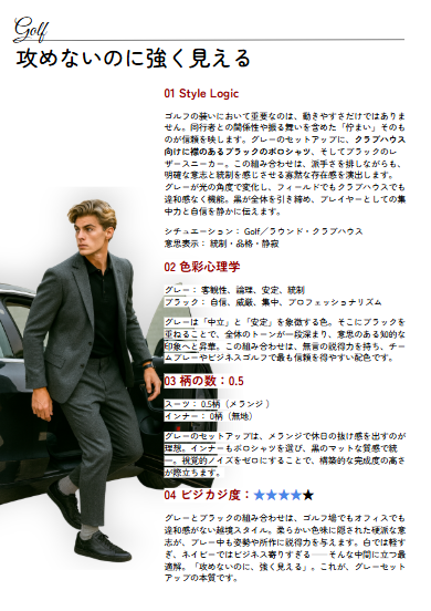 スタイル理論(Style Logic)、色彩心理(Color Psychology)、印象科学(Impression Science)といった要素をもとに、「ビジネスカジュアル」という曖昧な領域を再定義。
